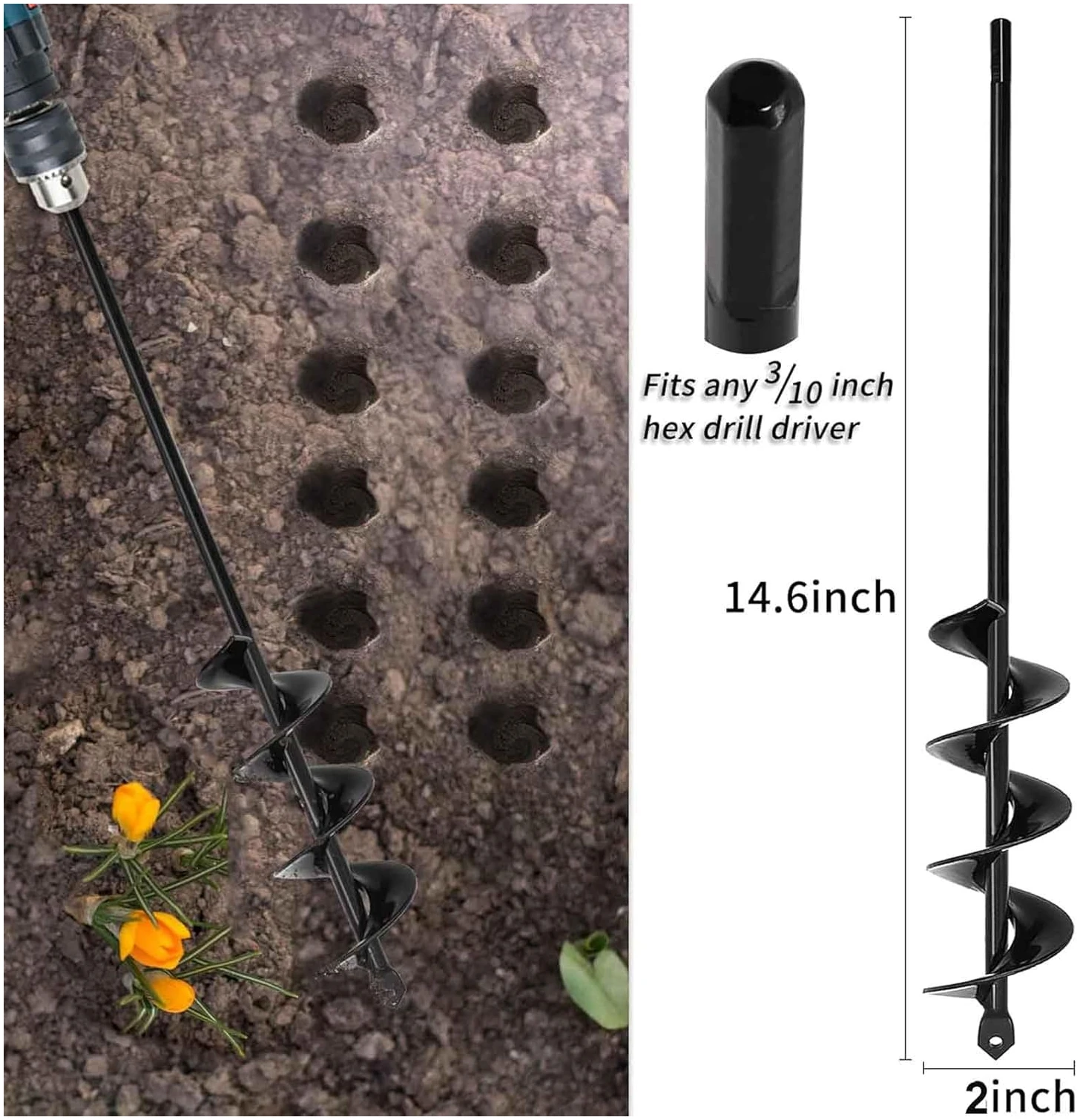 TCBWFY Auger Drill Bit 2×14.6inch Garden Plant Flower Bulb Auger Rapid Planter Bulb & Bedding Plant Auger for 3/8″ Hex Drive Earth Drill Fence Post Umbrella Hole Digger