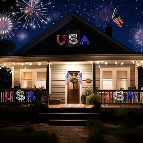 3 Pack 4th of July Window Lights Decorations, 138 LEDs “USA” Sign Memorial Day Decorations Window Silhouette for Independence Day Holiday Indoor Outdoor Tree Wall Door Window…