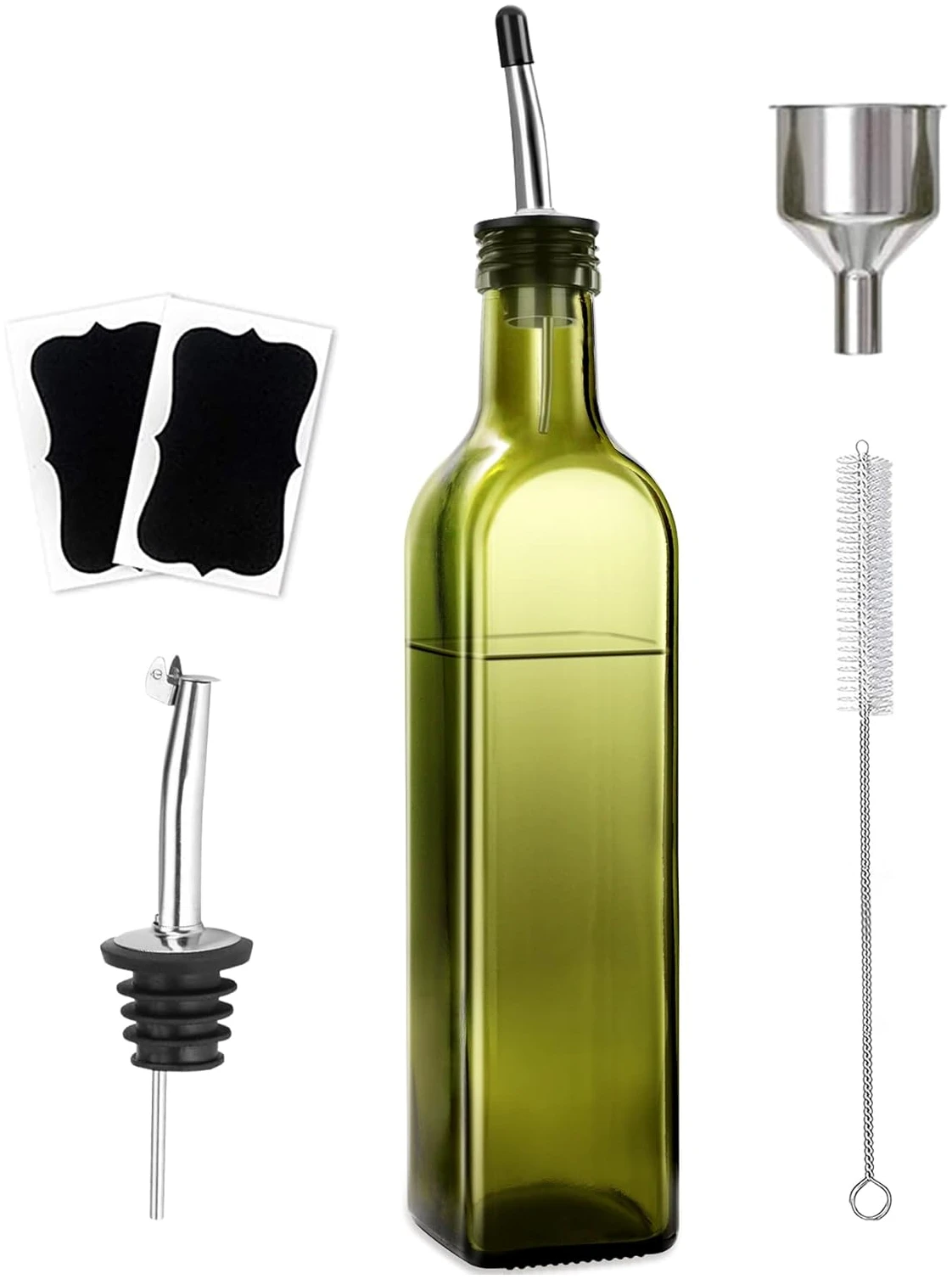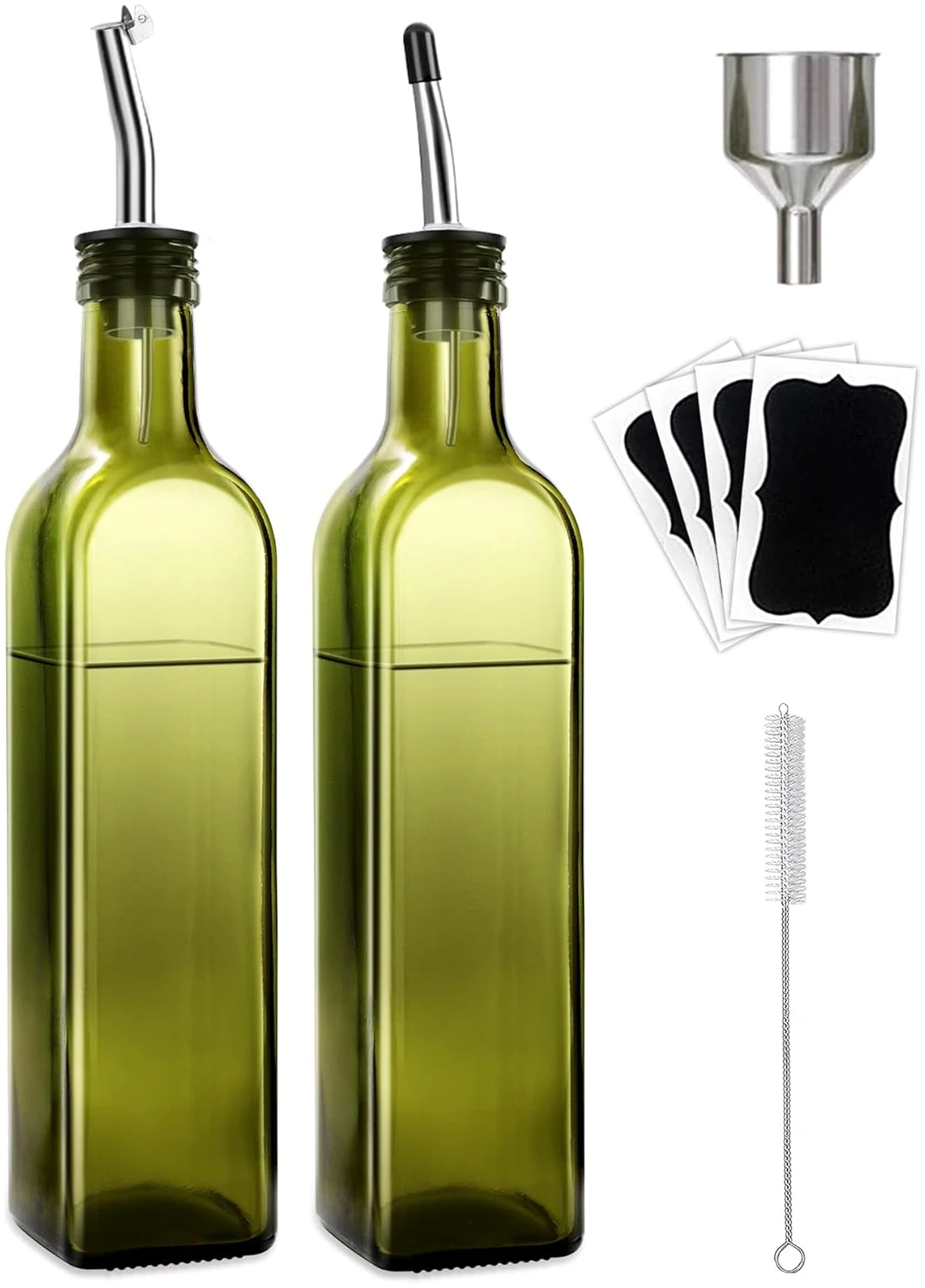 2670 reviews for Olive Oil Dispenser Bottle, 2 Pcs Glass Olive Oil Dispenser and Vinegar Dispenser Set with 2 Stainless Steel Pourers, 4 Labels,1 Brush and 1 Funnel Oil Bottles for Kitchen (500ml)