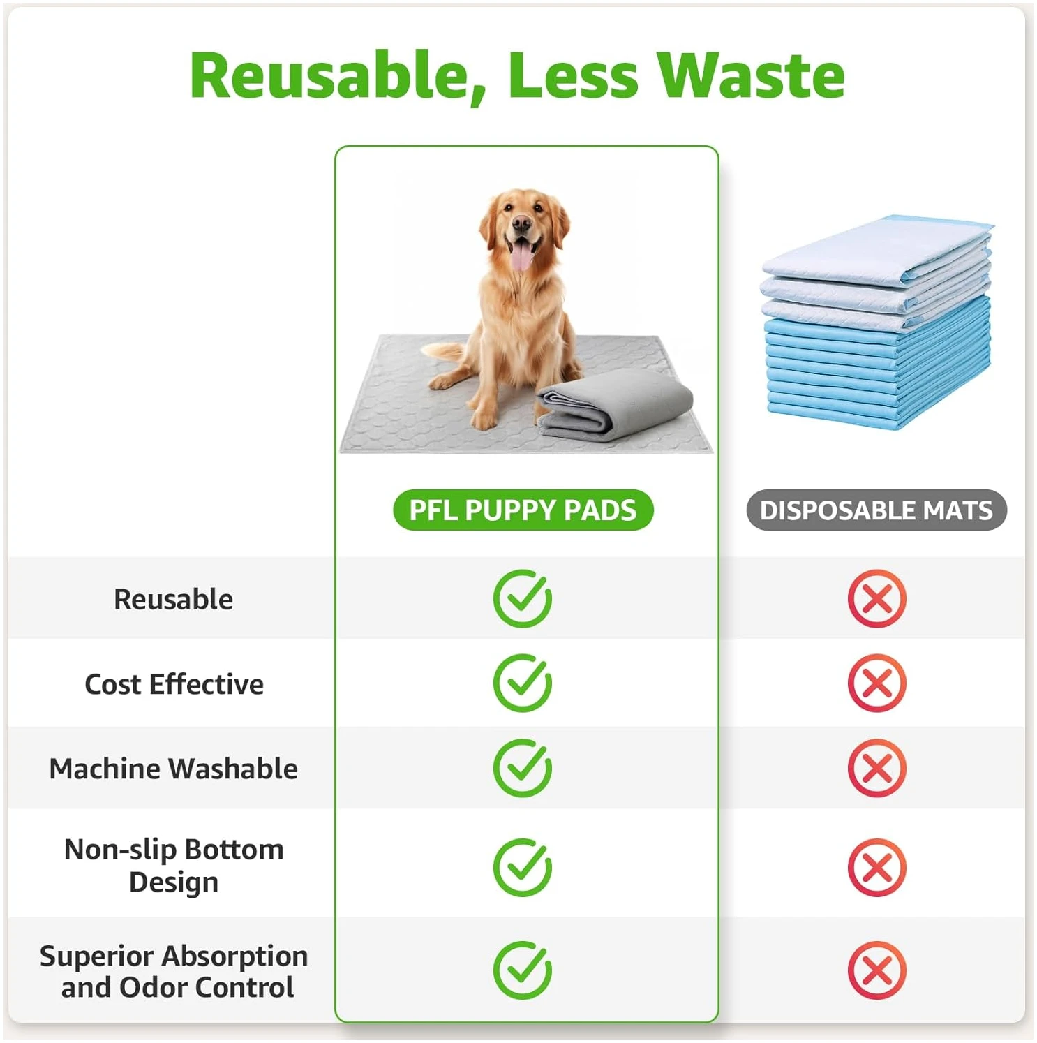 - WASHABLE DOG TRAINING PEE PADS: Optimal absorption of urine to prevent urine from damaging the floor. Reusable puppy pads not only save money, but also reduce the waste caused by disposable urine pads. It’s sturdy and completely machine-washable. The best choice for pet parents, no longer need to deal with the mess of disposable supplies all day!