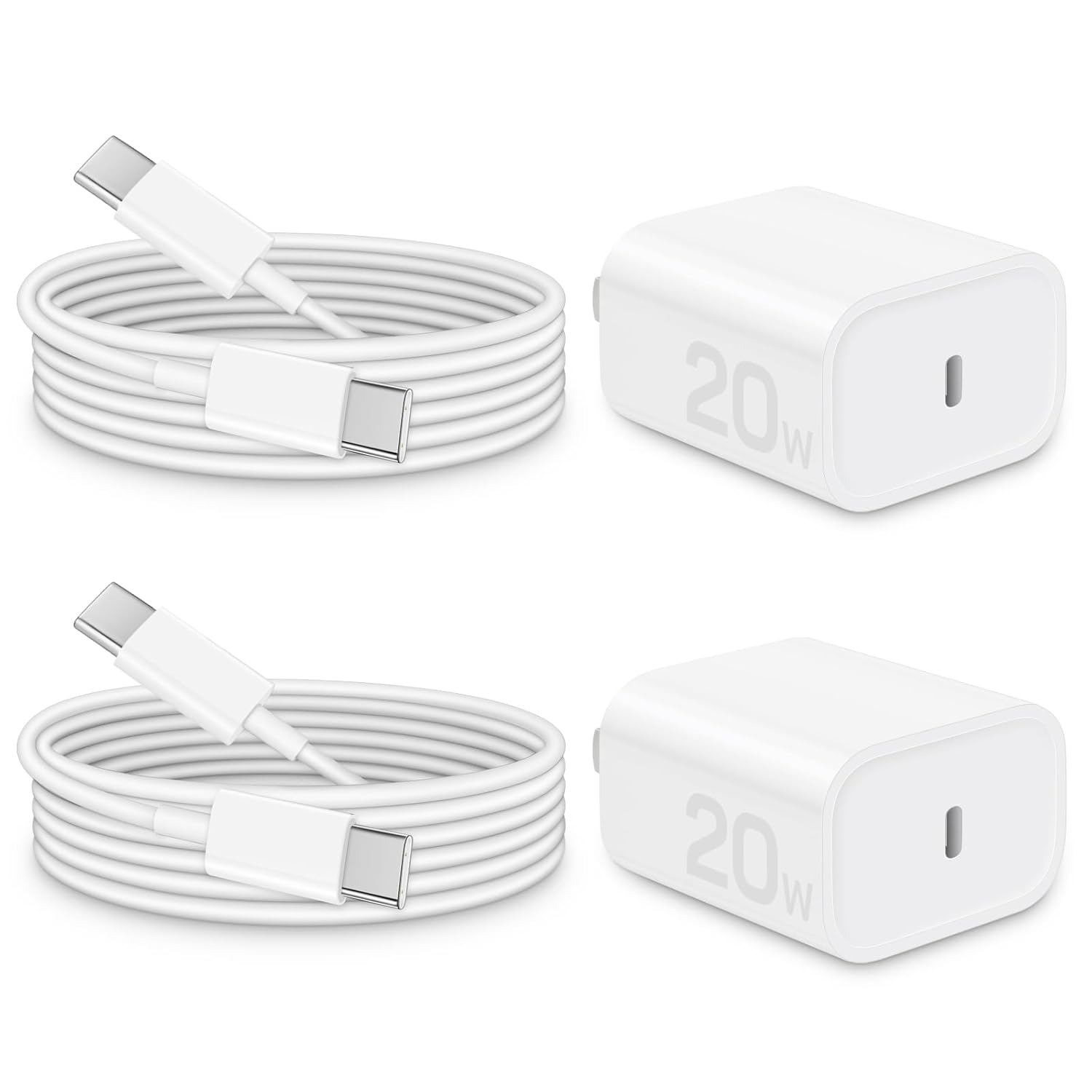 - [What You Get] 2 x 20W USB C charger, 2 x 6-Foot USB-C to USB-C cord.