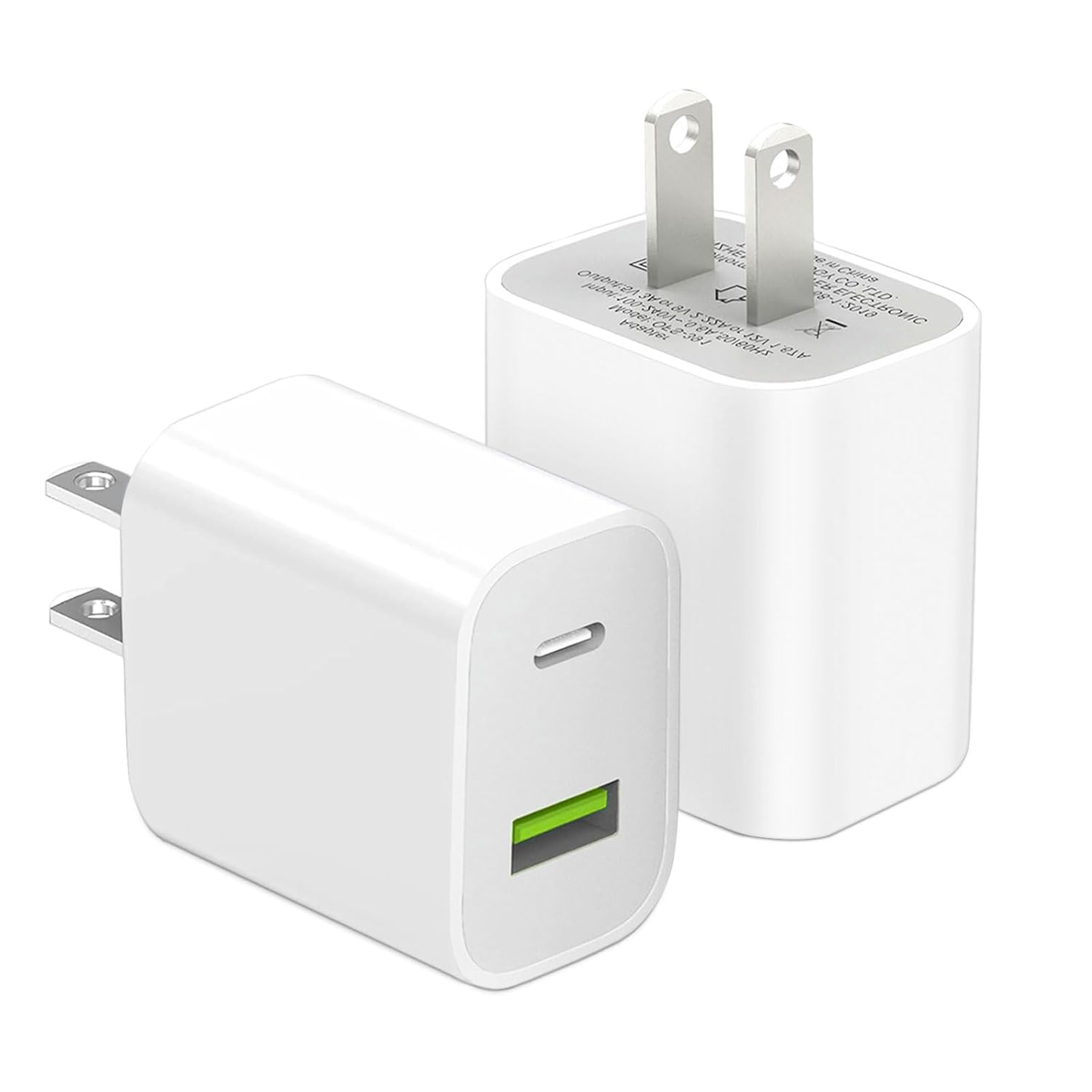 2 个装 USB C 充电器块,双端口 C 型壁式充电器快速充电 20W 电源适配器立方体,适用于 iPhone 14/14 Pro/14 Pro Max/14 Plus/13/12/11、XS/XR/X、iPad、三星等