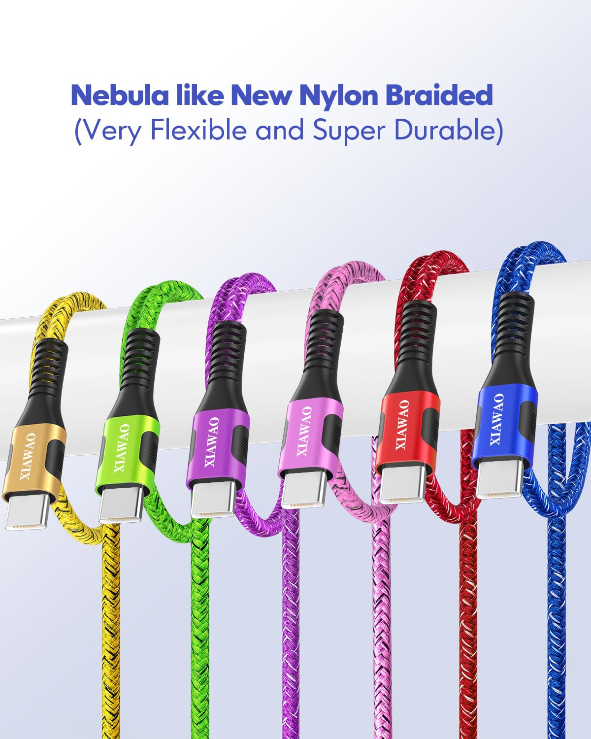 这些 USB-C 充电线颜色和长度各异,包装完好,使用良好。它们采用优质材料制成,充电速度很快。我喜欢不同尺寸的产品,可以满足不同的需求。总而言之,我对这次购物非常满意。