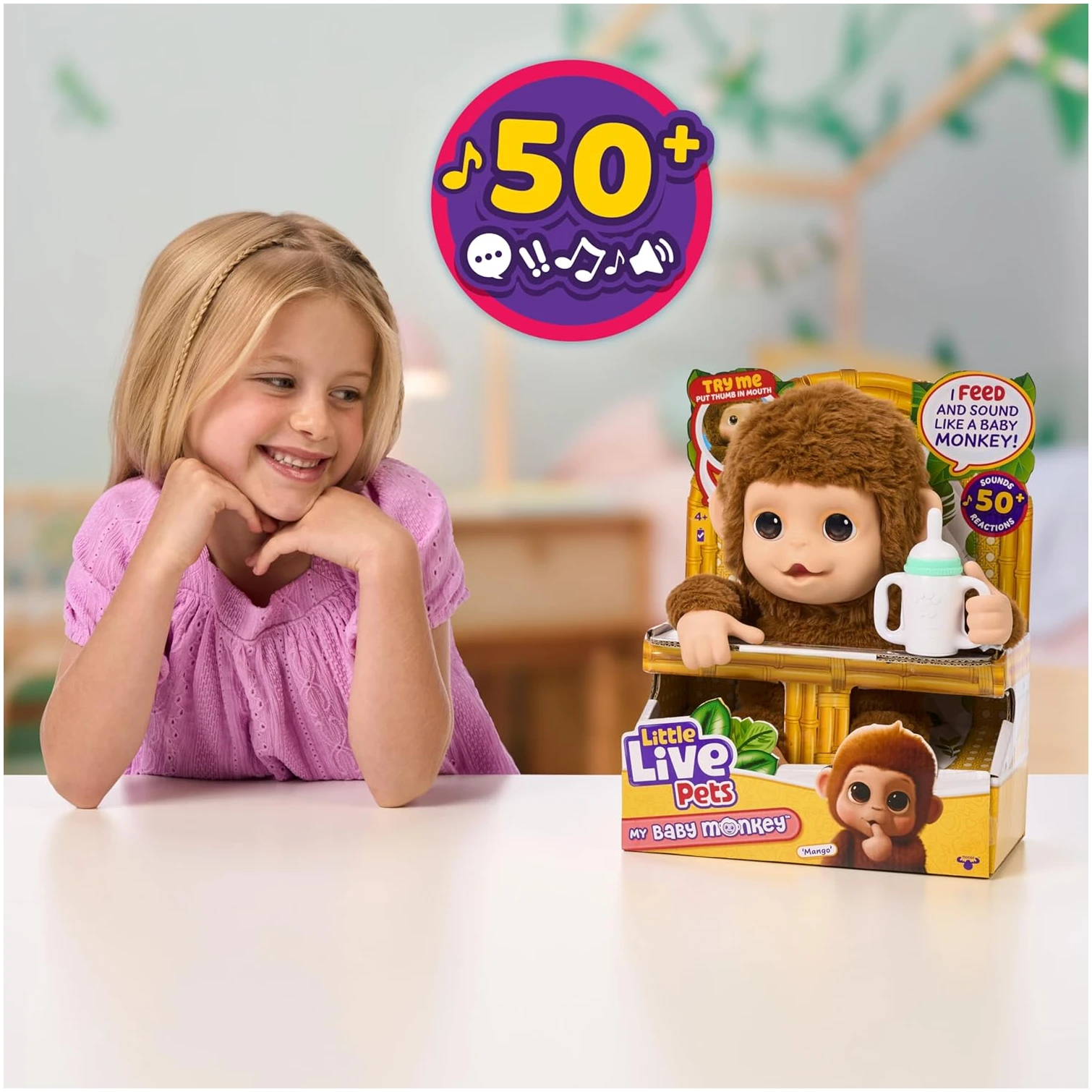 - Little Live Pets My Baby Monkey 是一种可爱的互动式动物宝宝,它会对您的触摸做出反应!