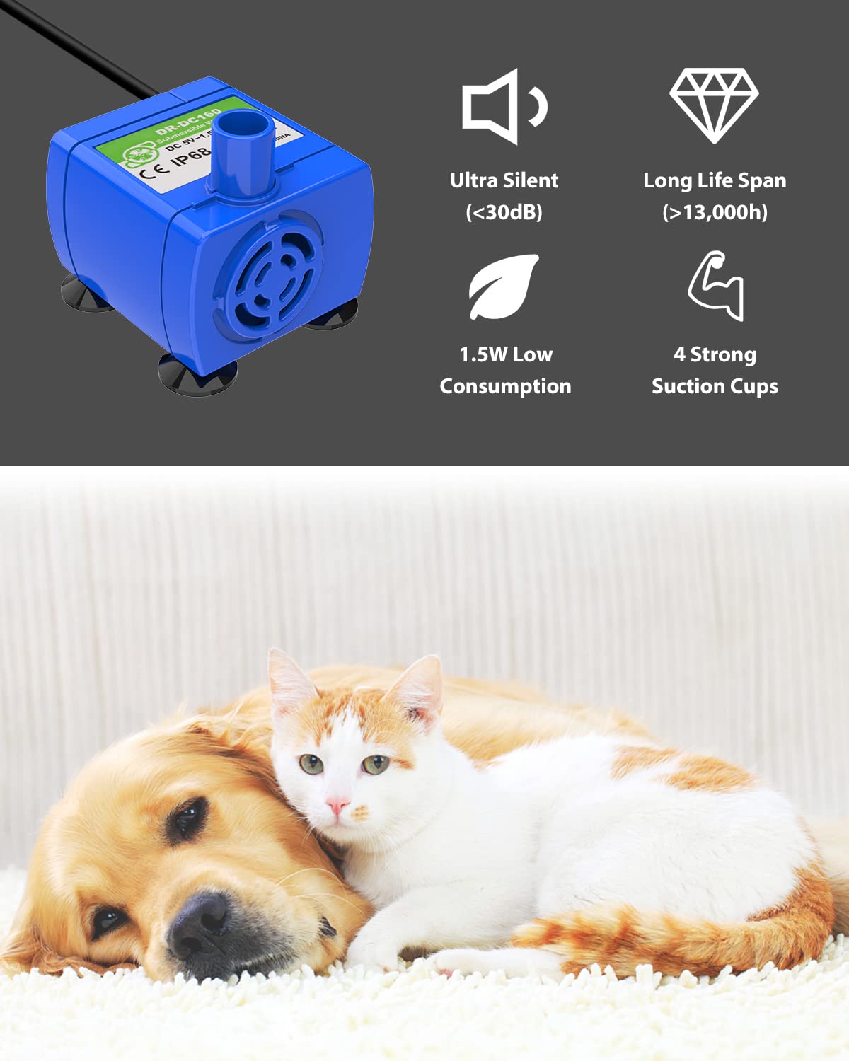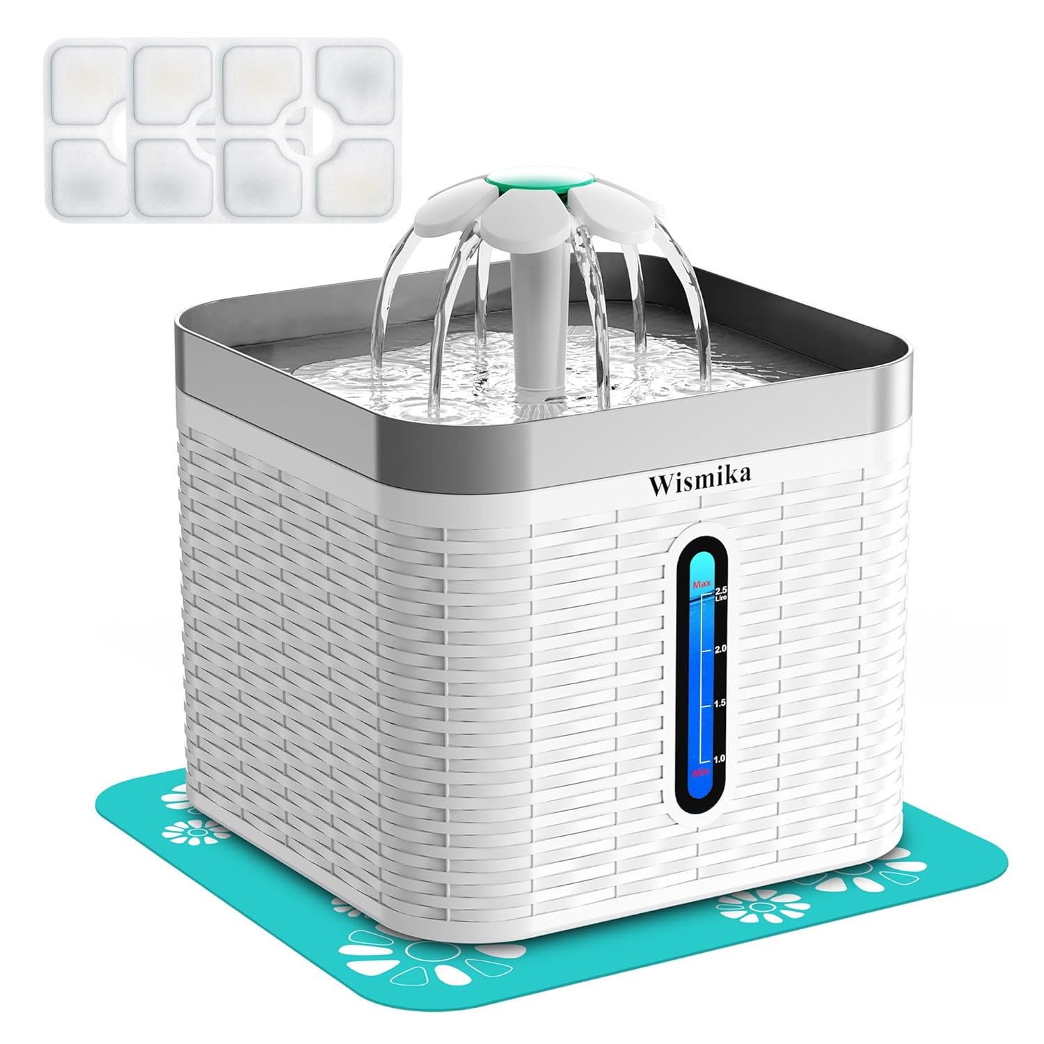 • 【2.5L 大容量】猫咪饮水器可容纳 2.5L/84oz 水,足以满足您家猫咪和狗狗 1 个月的饮水量。您可以安心外出工作或旅行。包装内含防水垫,无需担心水洒得到处都是。