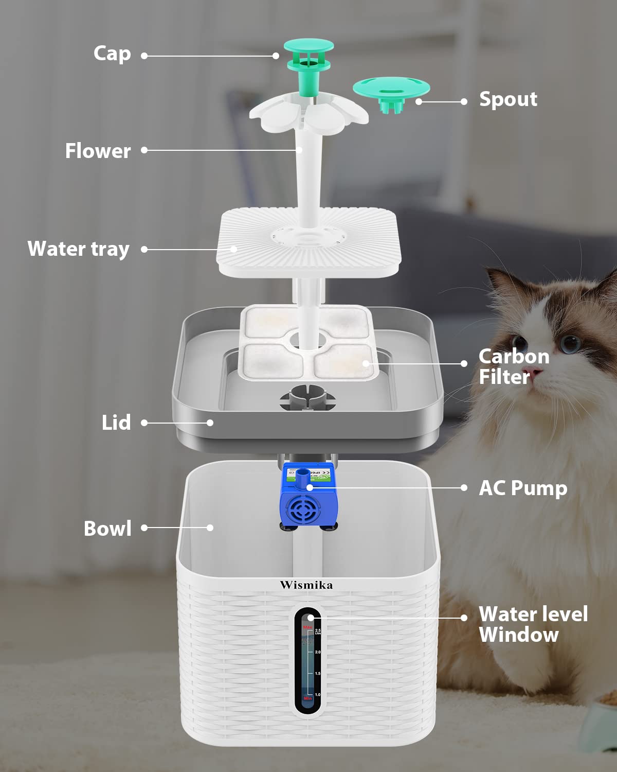 • 【4 种不同的水流设计】猫咪饮水器内置花瀑、汩汩瀑布、平缓水流、正常汩汩水流 4 种水流类型。您的猫咪一定会被这些奇特的水流吸引。